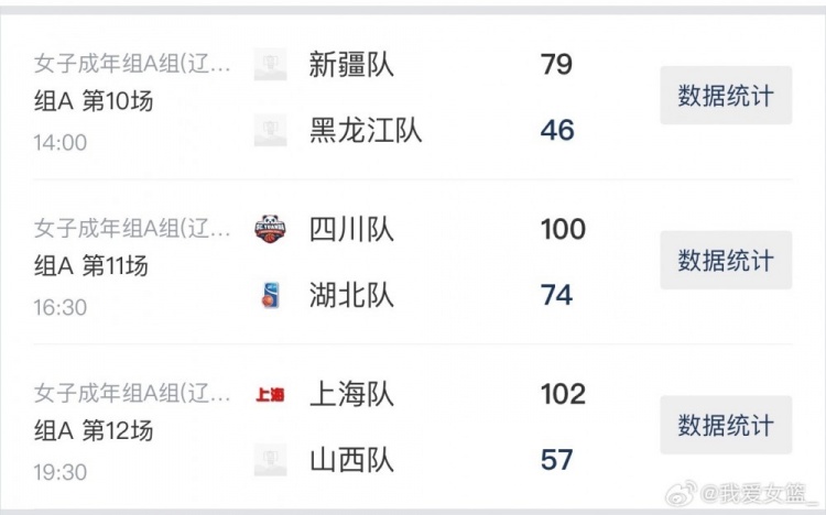 新疆队79-46黑龙江队,李玉琼15分7篮板,热苏拉、周昕芃各得13分,吴熠璠11分。黑龙江队田洋洋、孙萌各11分。