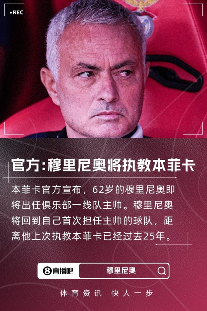 重返葡超!本菲卡官方:穆里尼奥将出任球队主帅,即将完成签约